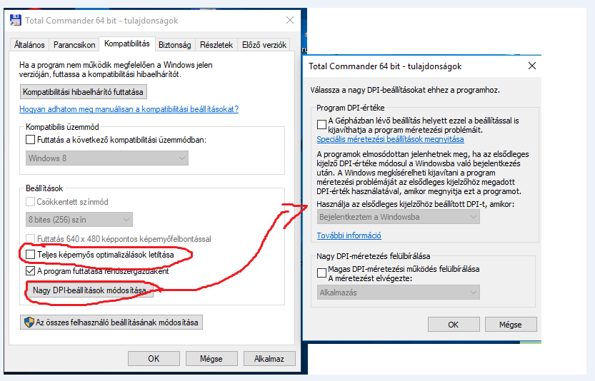 Ha az ACTUAL képe homályos, kattintsunk a képernyőn lévő ACTUAL Ügyvitel parancsikonjára a jobb egérgombbal, majd módosítsuk a beállításokat a lenti kép szerint.